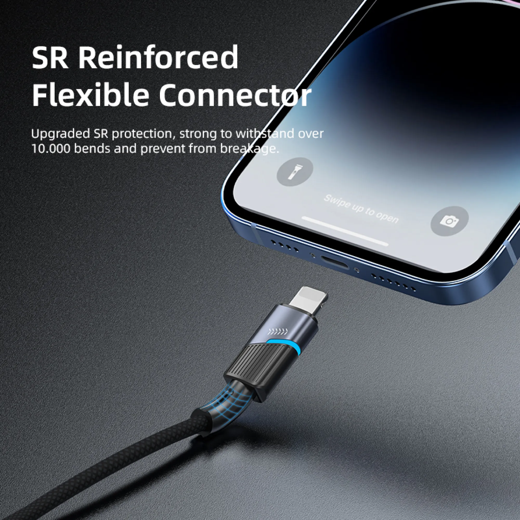 Made of 48-strand high-density nylon, ensuring exceptional bending resistance and lasting flexibility for daily use.SR Reinforced Connector Protection