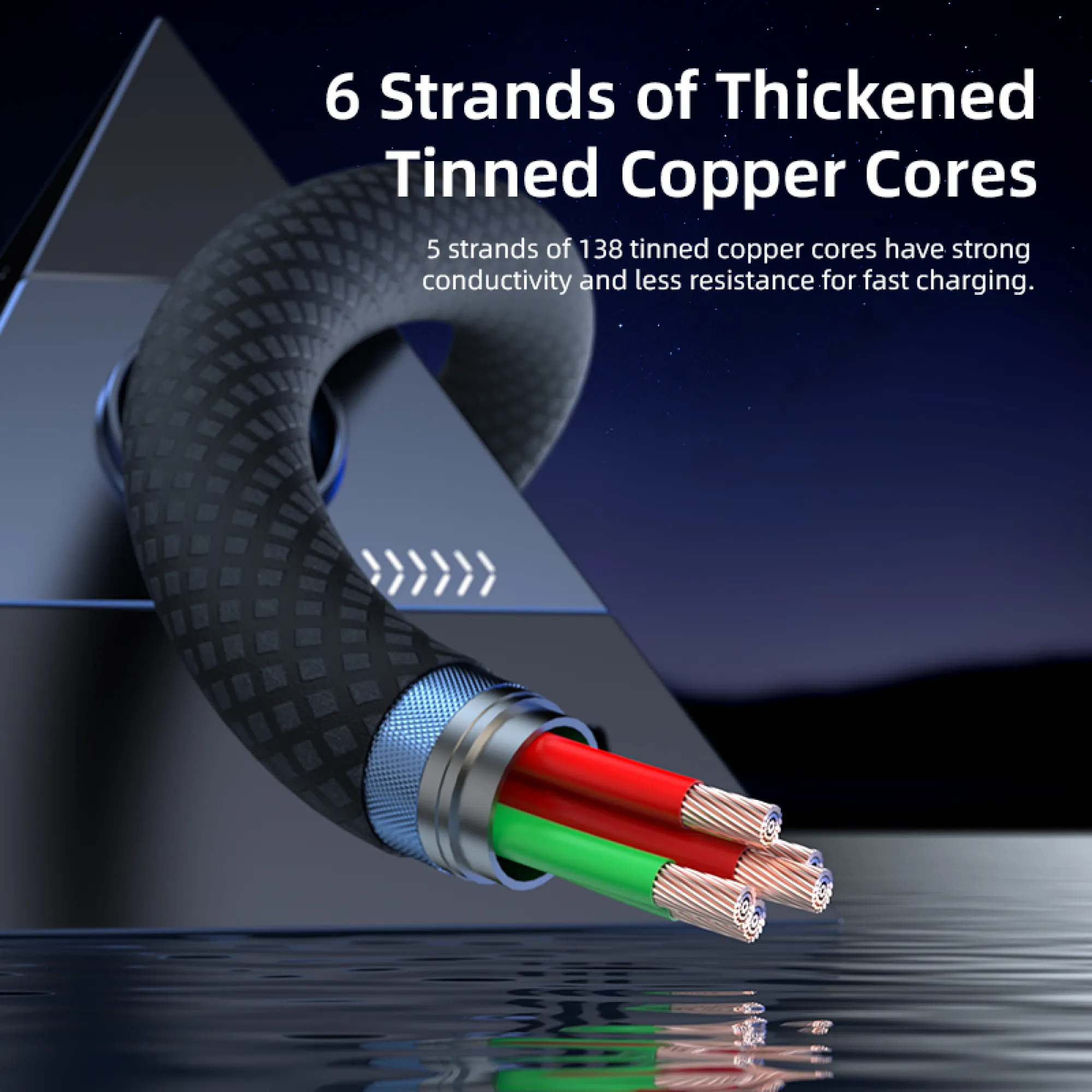 Advanced intelligent chip automatically identifies devices, regulates current and voltage, and ensures safe, efficient charging every time.Tinned Copper Core Architecture